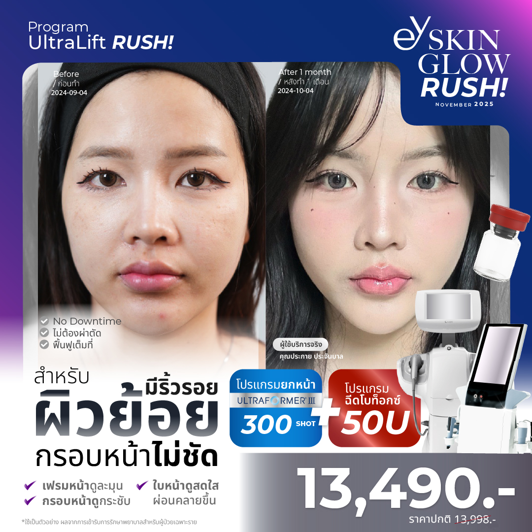 Ultraformer คือ เทคโนโลยียกกระชับผิวหน้าด้วยคลื่นเสียงอัลตราซาวด์ความเข้มข้นสูง หรือ HIFU (High Intensity Focused Ultrasound) ค่ะ โดยคลื่นพลังงานเสียงที่ถูกปล่อยลงสู่ชั้นผิวจะเปลี่ยนเป็นความร้อน ซึ่งทำให้เนื้อเยื่อหดตัวและกระตุ้นการผลิตคอลลาเจนใหม่ค่ะ ซึ่ง Ultraformer มีความโดดเด่นที่เทคโนโลยี MMFU (Micro & Macro Focused Ultrasound) พร้อมหัวยิงพลังงานหลายขนาด ซึ่งช่วยเพิ่มความยืดหยุ่นและความแม่นยำให้การรักษามากขึ้นค่ะ Ultrafomer ทำงานได้ลึกถึงชั้น SMAS (Superficial Muscular Aponeurotic System) ซึ่งเป็นชั้นผิวเดียวกับที่ศัลยแพทย์ใช้ในการผ่าตัดดึงหน้า ทำให้สามารถแก้ปัญหาผิวหย่อนคล้อยและริ้วรอยได้อย่างมีประสิทธิภาพ อีกทั้งยังส่งพลังงานได้ลึกถึงชั้นไขมันใต้ผิวหนัง (Subcutaneous fat) ซึ่งช่วยกระชับ เช่น บริเวณเหนียง แก้ม ต้นแขน และต้นขาได้ค่ะ